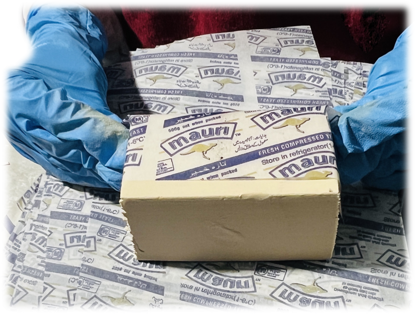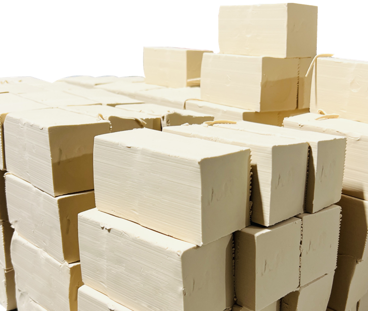 A pale yellow solid block derived from a yeast suspension, which has undergone filtration and extrusion to achieve a semi-solid, moist, and slightly brittle texture. Mauri Fresh compressed yeast is produced using state-of-the-art machinery and contemporary techniques to optimize results in fermented product.